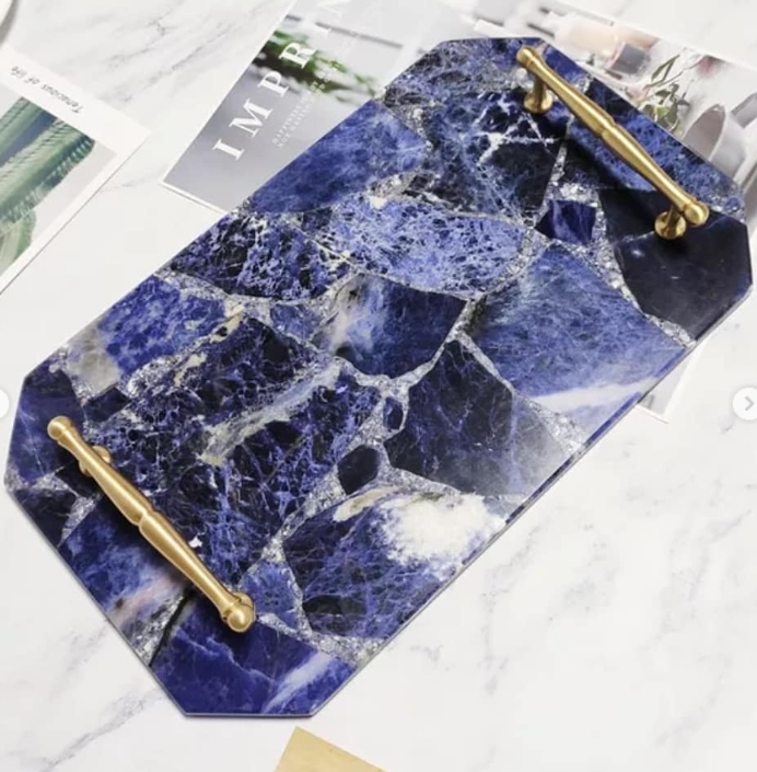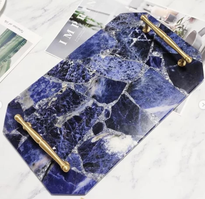 Поднос из содалита – отличное украшение интерьера и прекрасная вещь для банкетов, свадеб, торжественных мероприятий и прочих ярких событий в вашей жизни.