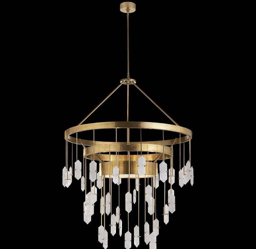 Шикарная люстра премиального качества Visual Comfort Halcyon Large Three Tier Chandelier. Яркое решение для современной, статусной гостиной. Ручная работа. Доломит, латунь. 212х91х165 см.