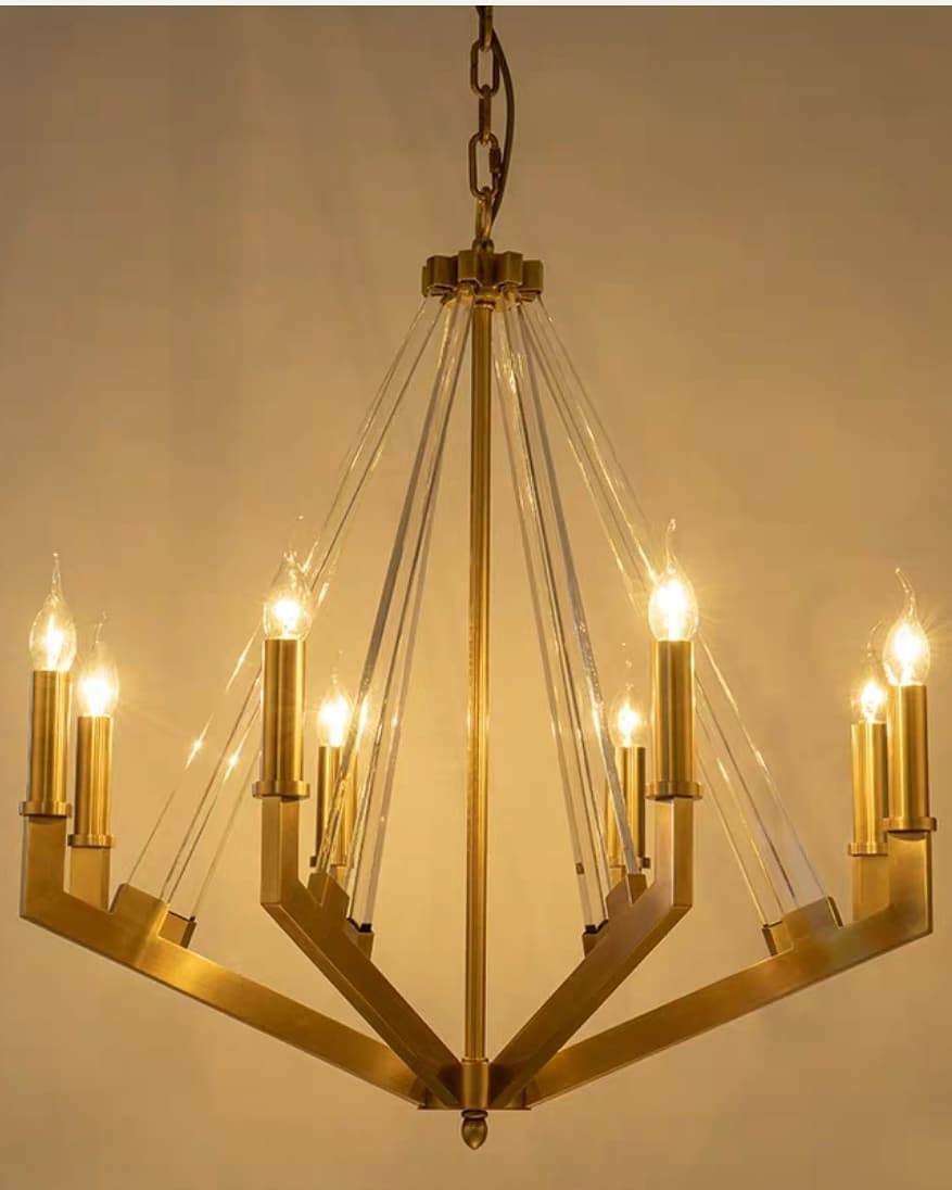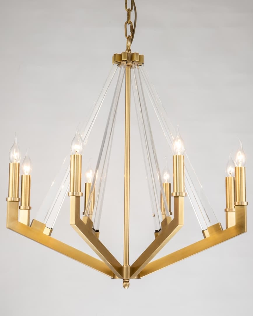 Современная, шикарная люстра Visual Comfort, изготовленная из благородной латуни и акрила. Утонченный, умеренный минимализм. Десять «свечей» щедро и полноценно наполнят ваши гостиные комфортным светом.