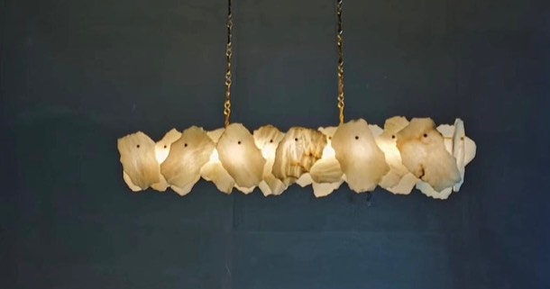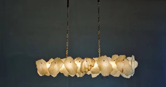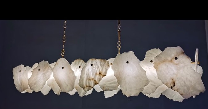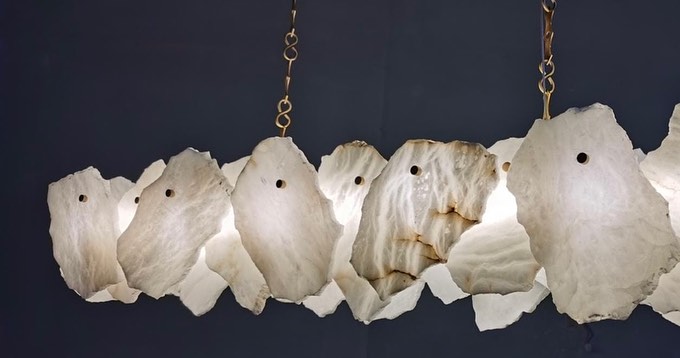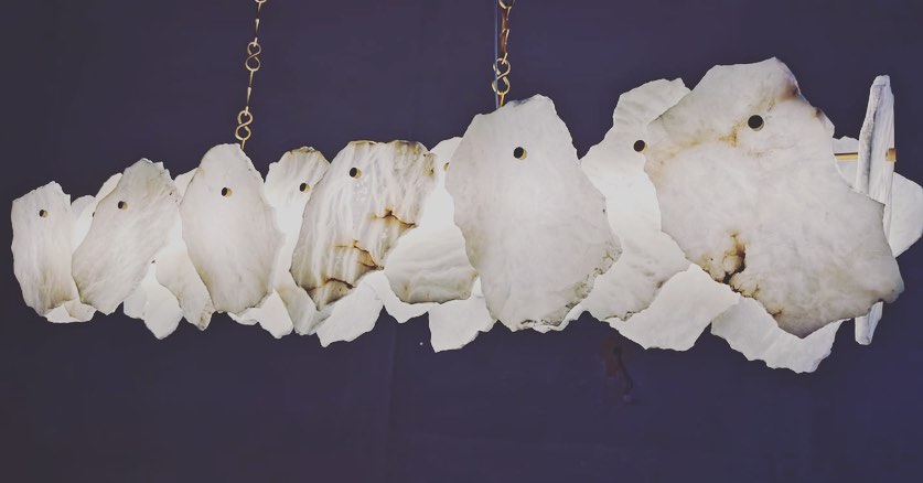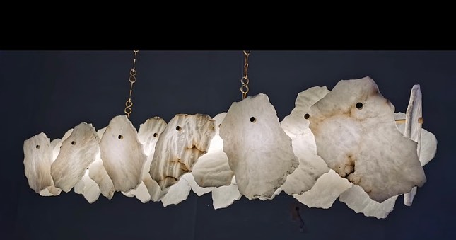 Линейка роскошных, дизайнерских люстр Monsterior Shop! Реечный светодиодный светильник с декором в виде мраморных пластин неправильной формы.