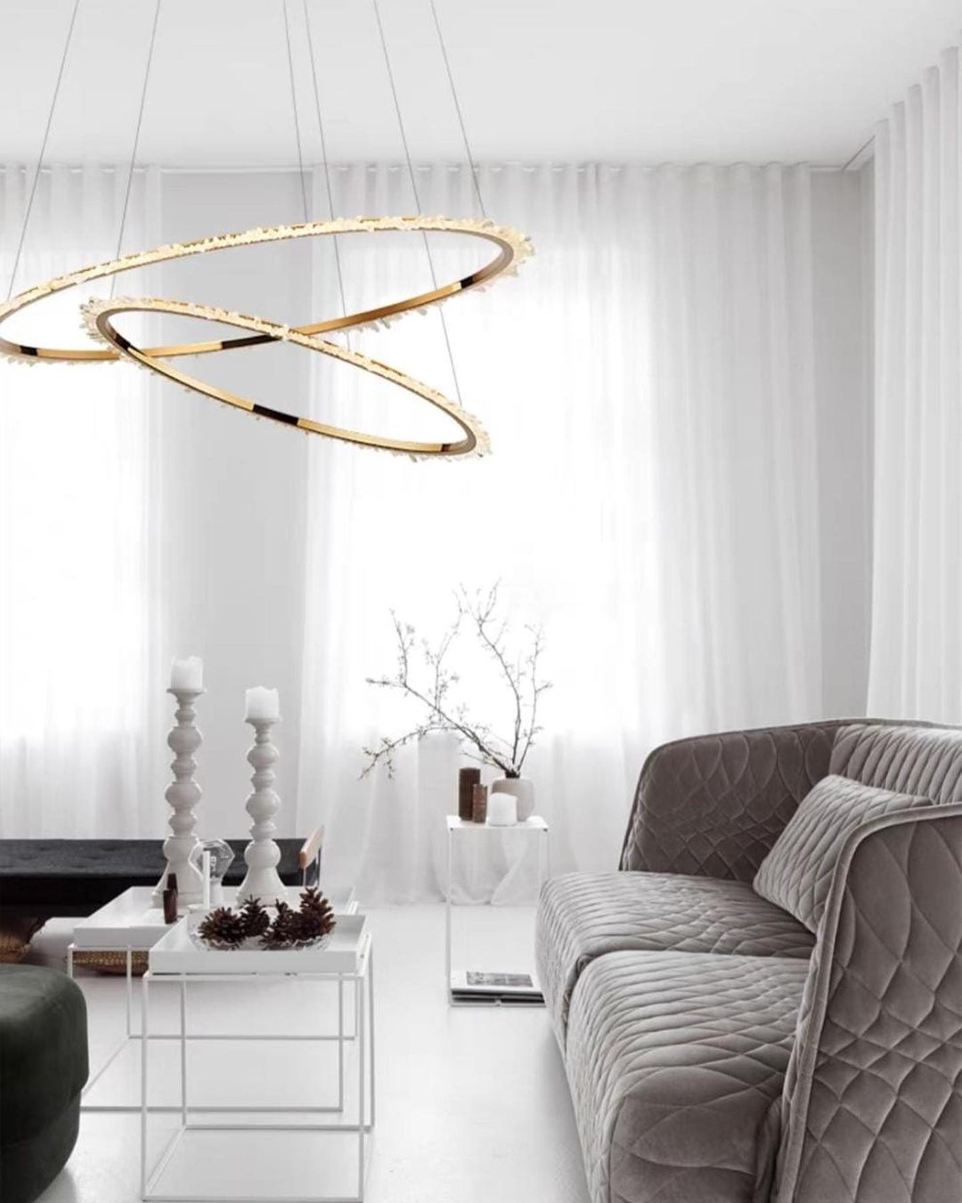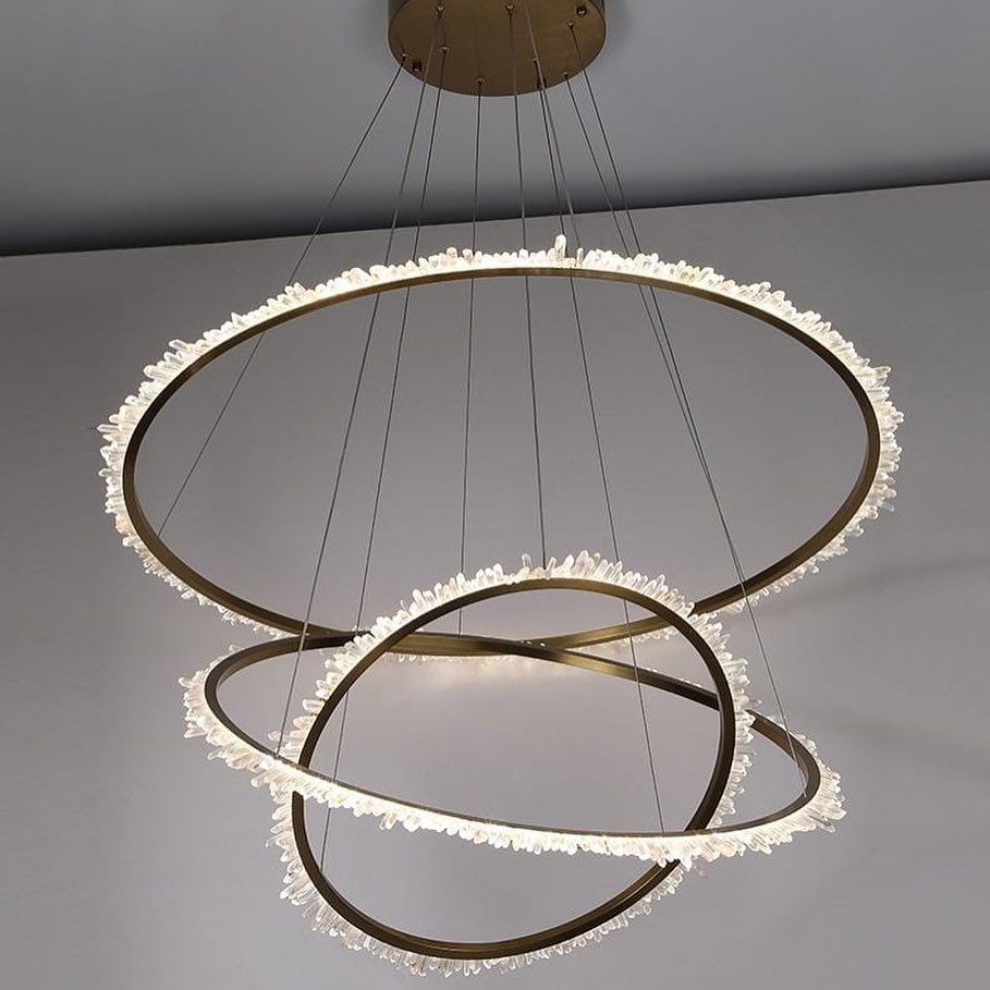 Изящные люстры Monsterior Shop — роскошное, яркое украшение для современной, стильной гостиной. Ручная работа. Кристаллы натурального отборного горного хрусталя, благородная латунь.