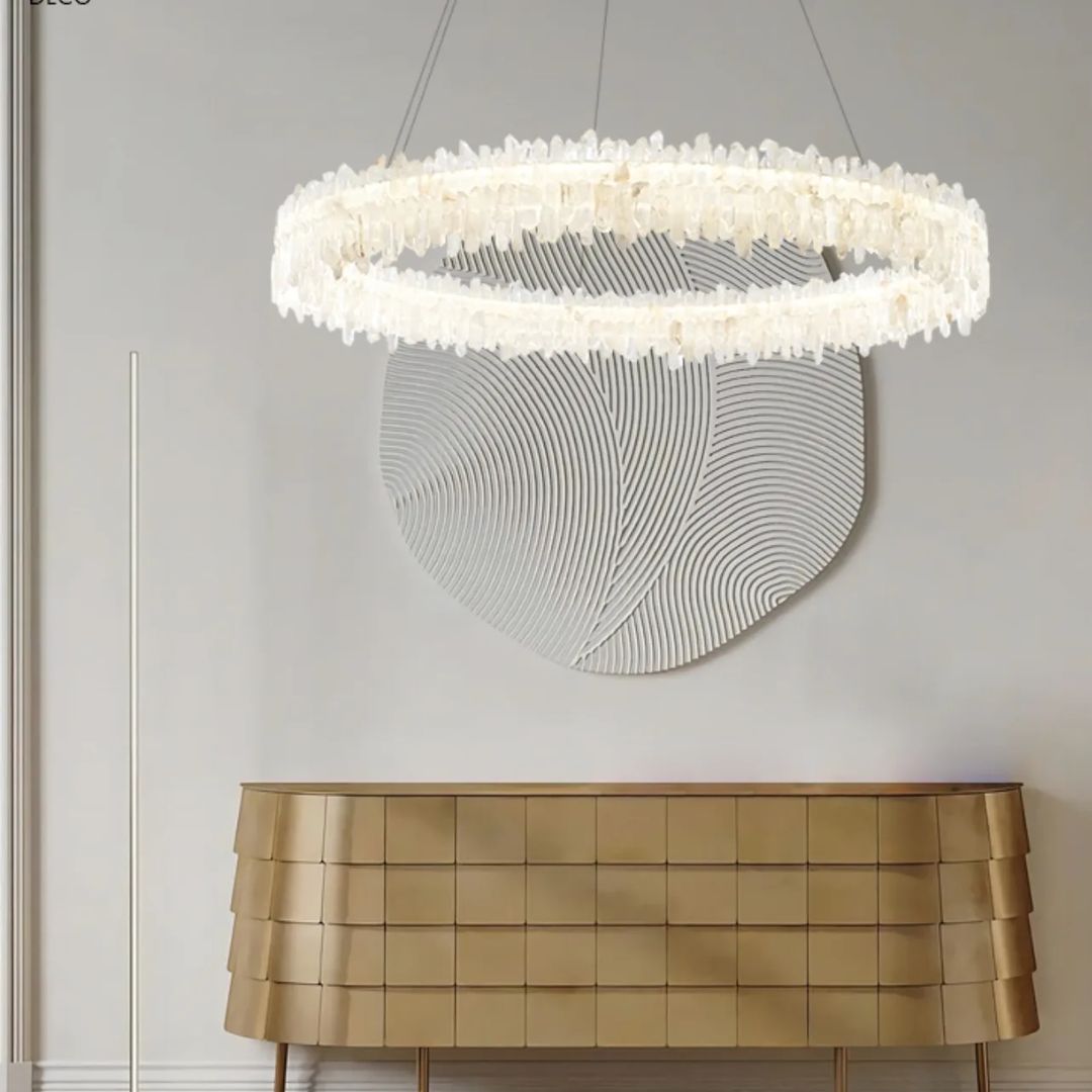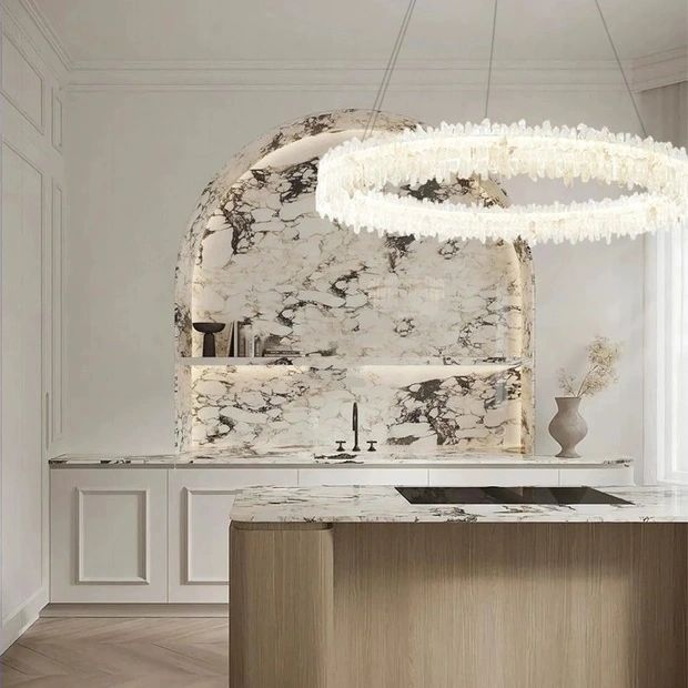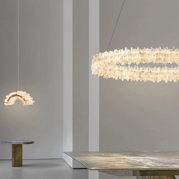 Роскошная люстра Monsterior Shop для украшения оригинального, статусного интерьера. Изобилие отборных натуральных кристаллов горного хрусталя, латунь, розовое золото. Классически-сакральная форма. Бесподобная красота в вашем личном пространстве.