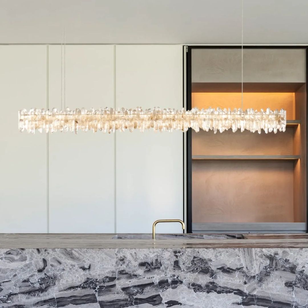 Роскошная люстра Monsterior Shop для украшения оригинального, статусного интерьера. Изобилие отборных натуральных кристаллов горного хрусталя, латунь, розовое золото. Классически-сакральная форма. Бесподобная красота в вашем личном пространстве.