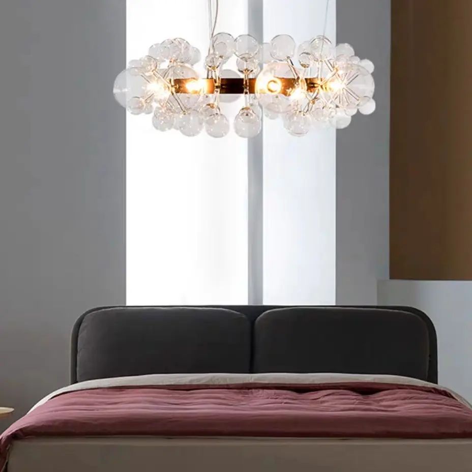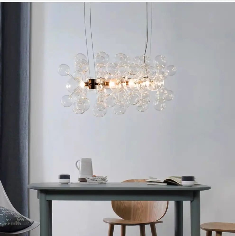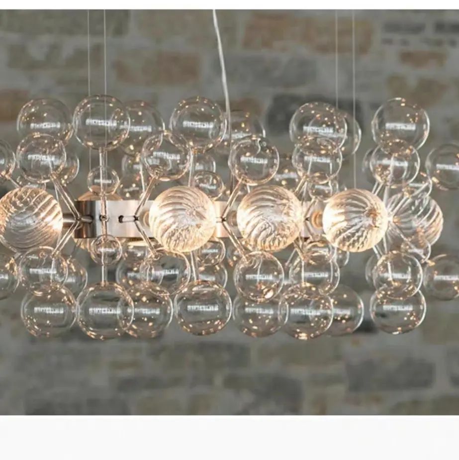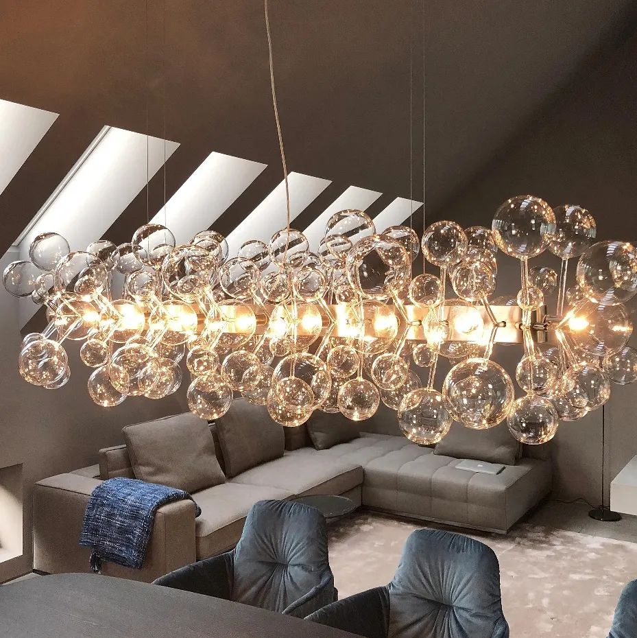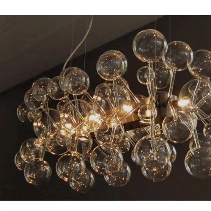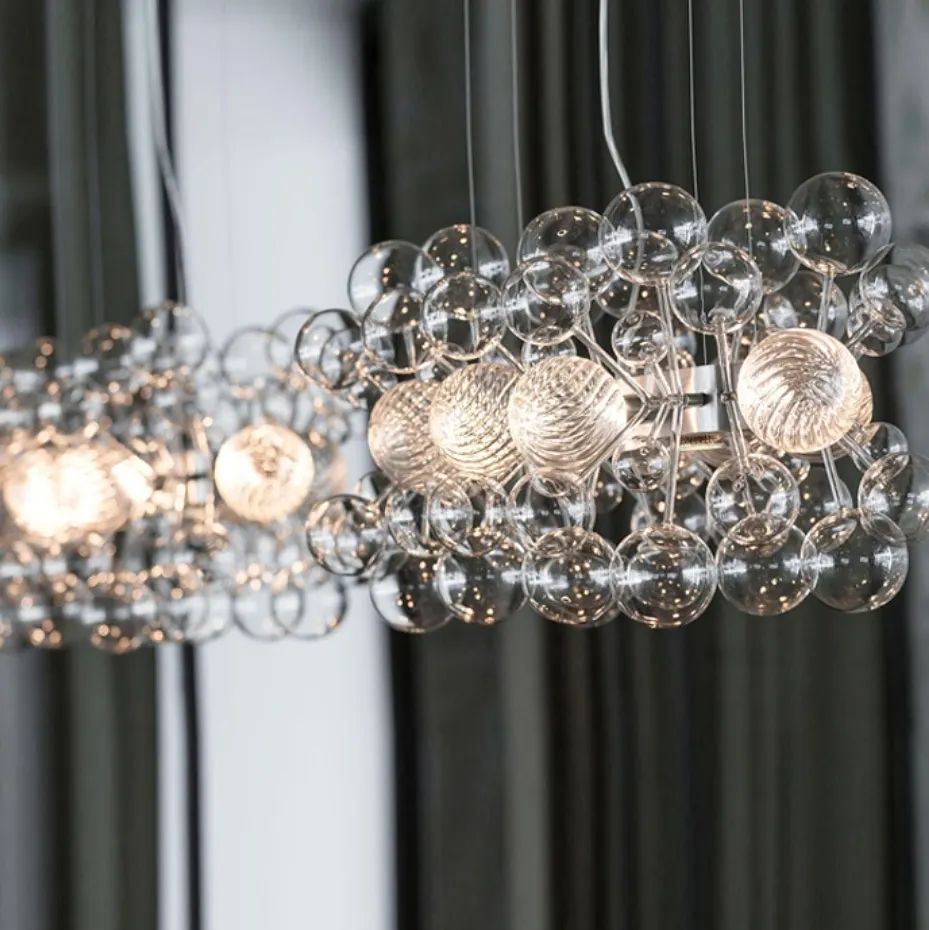 Роскошная дизайнерская люстра ручной работы. Яркая, воздушная красота, состоящая из идеальных прозрачных сфер. Кажется, что она невесомо парит в пространстве, невзирая на земное притяжение. Отличное и оригинальное решение для современного уникального интерьера.