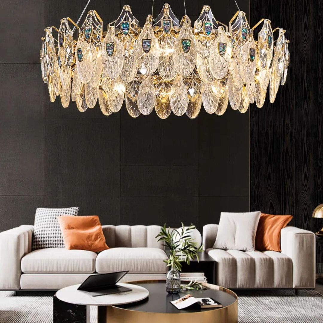 Роскошная люстра Monsterior Shop, которая увенчает интерьер вашей гостиной, добавив в него волшебной, фееричной красоты! Ручная работа. Очаровательная игра света в чистейшем стекле, натуральном перламутре. Каркас – благородная латунь.