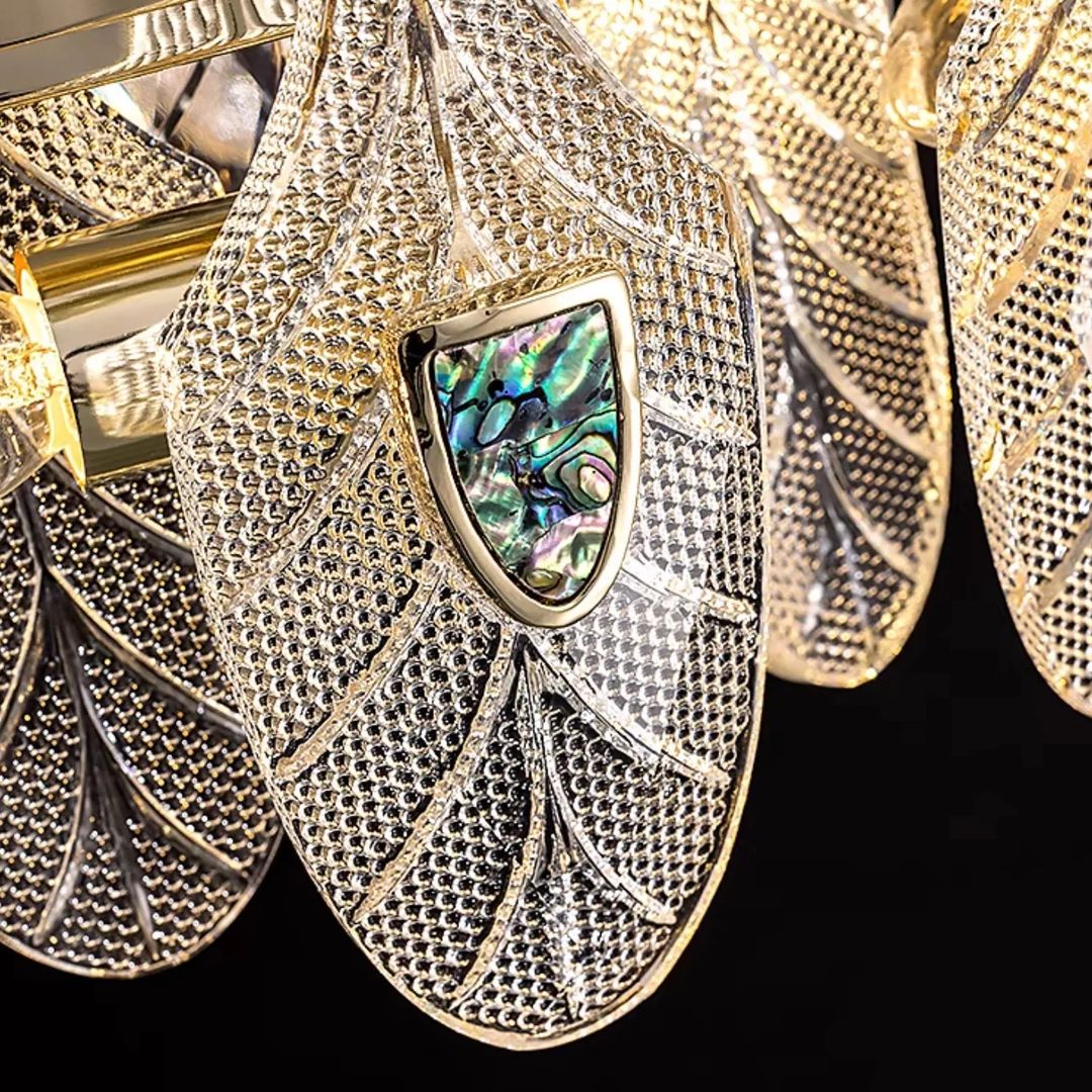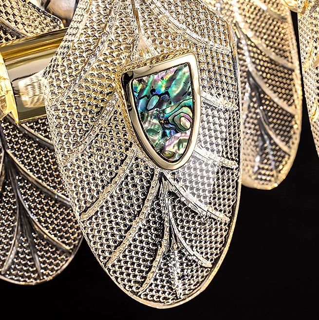 Роскошная люстра Monsterior Shop, которая увенчает интерьер вашей гостиной, добавив в него волшебной, фееричной красоты! Ручная работа. Очаровательная игра света в чистейшем стекле, натуральном перламутре. Каркас – благородная латунь.