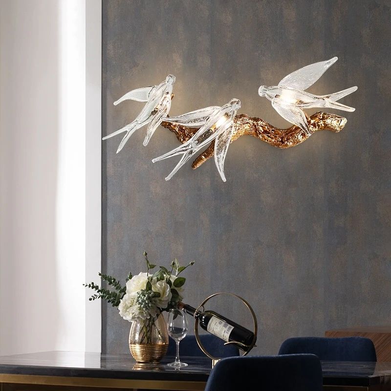 Роскошный настенный светильник с ласточками – стильный позитив в вашем личном пространстве.