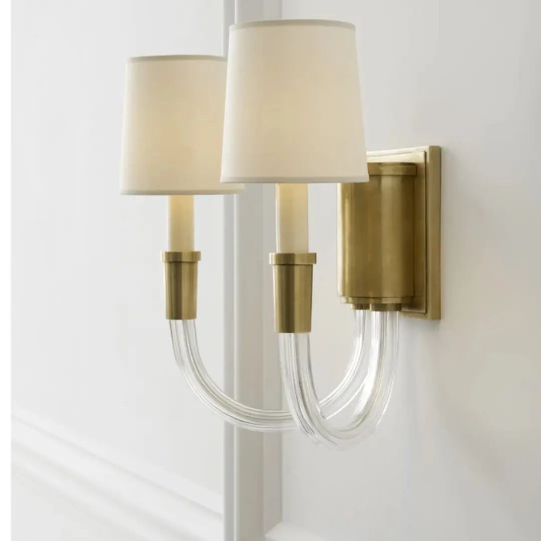 Белоснежные плафоны и золотой блеск благородной латуни – отличное сочетание в современной люстре и бра от Visual Comfort. Ручная работа. Стильное и изящное решение для украшения статусного и уникального интерьера.