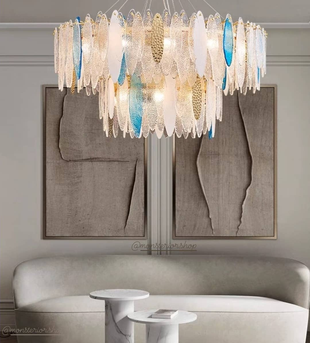 Яркая линейка люстр с очаровательными подвесками из стекла ручной работы! Шикарные каскады из «льдинок-рыбок», как отсылка к этническому скандинавскому стилю. Прекрасный свет для современного, стильного и уникального интерьера. Размеры и цвета – на фото.