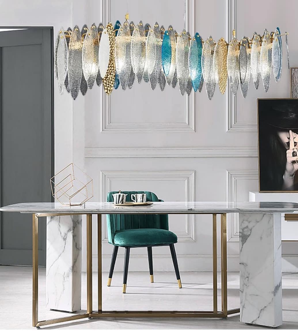 Яркая линейка люстр с очаровательными подвесками из стекла ручной работы! Шикарные каскады из «льдинок-рыбок», как отсылка к этническому скандинавскому стилю. Прекрасный свет для современного, стильного и уникального интерьера. Размеры и цвета – на фото.