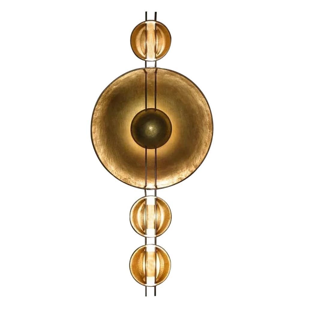 Очаровательные светильники-бра ручной работы! Благодаря оригинальному дизайну светильники являются и отличным декоративным элементом, который разнообразит современный интерьер. А как классно они смотрятся во включенном состоянии! Прекрасный, уютный свет для вашей спальни, гостиной или прихожей. Нержавеющая сталь, золотая поталь. Размеры на фото. Настенные светильники для ценителей изысканного, уникального интерьера!