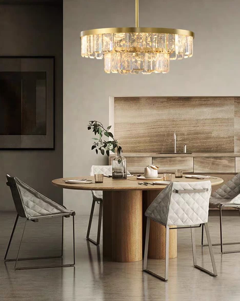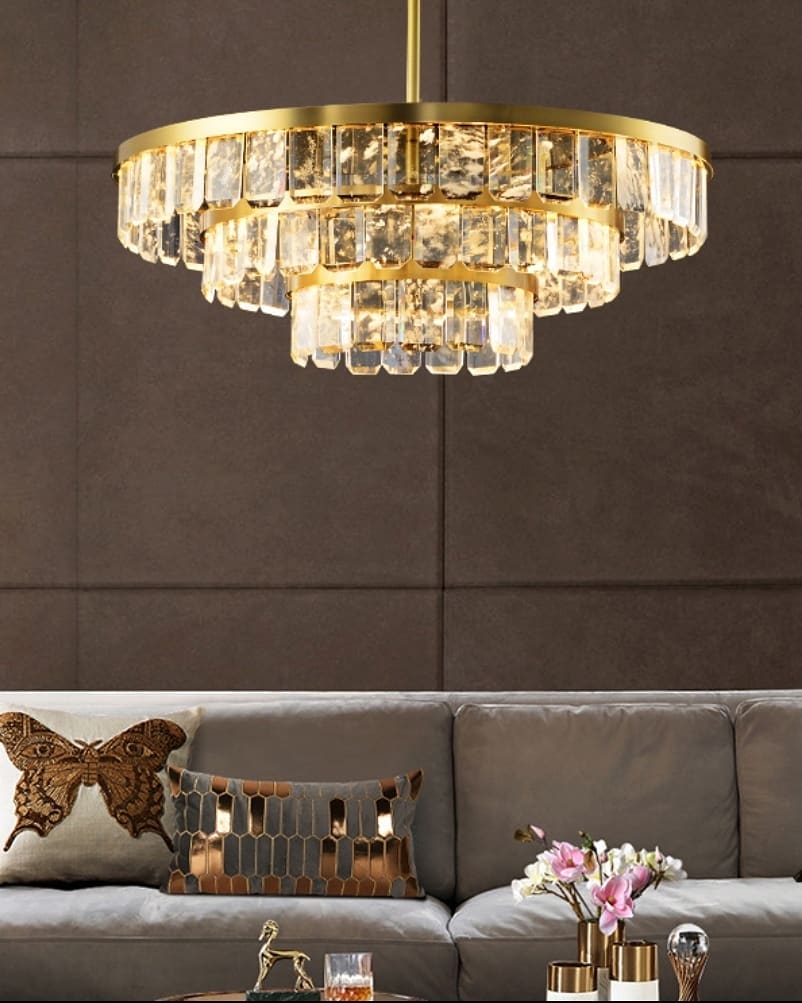 Дизайнерская люстра ручной работы для солидной гостиной. Натуральные кристаллы горного хрусталя в сочетании с благородной латунью. Изящная красота и яркий источник комфортного и экологичного света.