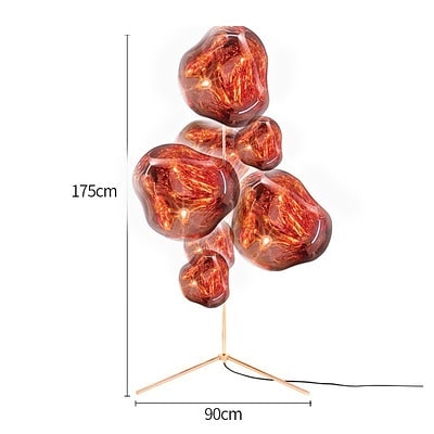 Дизайнерский напольный светильник – роскошно-удивительный и необычный! Кто-то увидит в нем огромные янтарные капли, кто-то пылающую лаву, кто-то воздушные пузыри, а кто-то незавершенную работу стеклодува! В любом случае, светильник не оставит никого равнодушным, и будет прекрасно смотреться в современном стильном и оригинальном интерьере.