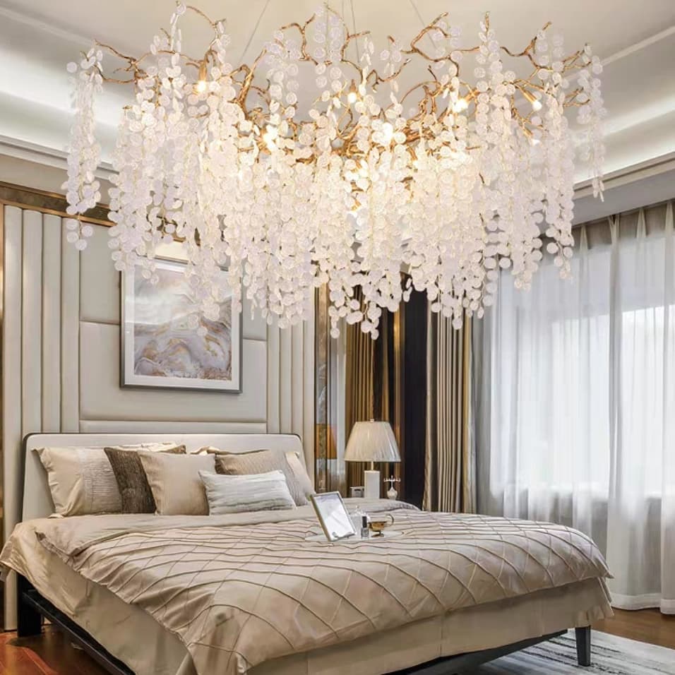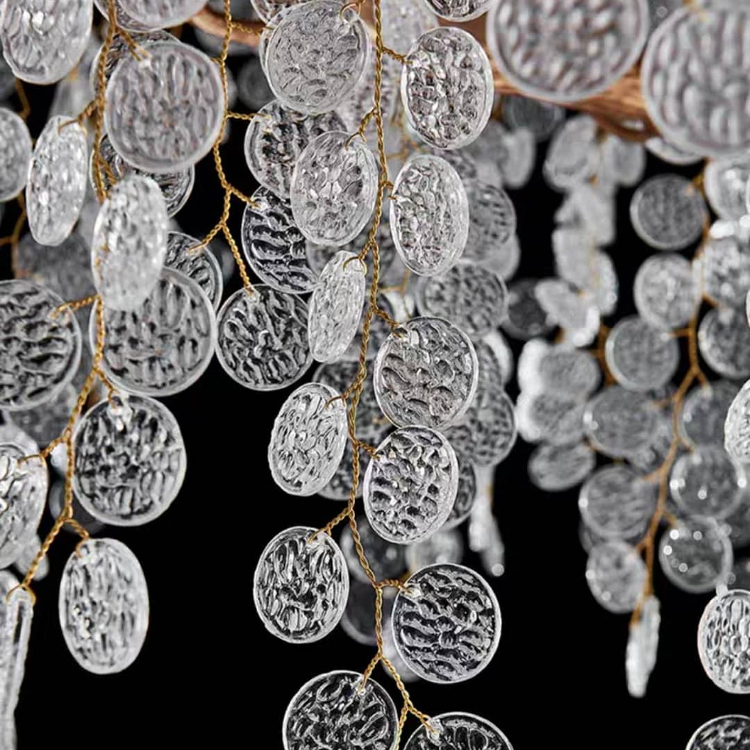 Роскошная люстра Широ-Нода, как замечательный результат дизайнерского вдохновения прекрасной цветущей глицинией. Идеальное творческое решение от самой природы! Изобильные гроздья хрустальных «цветков» – отличное решение для солидного, богатого и стильного интерьера.