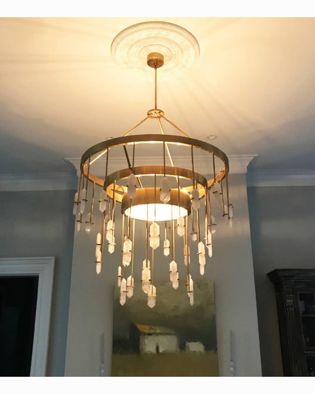 Линия очаровательных бра и люстр из благородной латуни и кристаллов натурального доломита. Ручная работа. Красота, необычность и потрясающая игра света. Кажется, что кристаллы светятся изнутри!