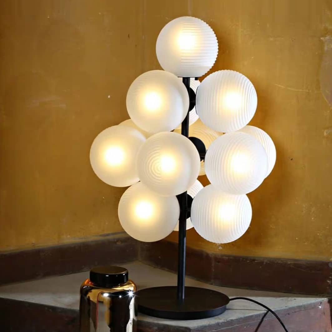 Удивительная и очаровательная серия – люстра, торшер и светильник, для качественного разгона темноты, и для того, чтобы ваш интерьер стал ещё более прекрасным! Оригинальный, очень неожиданный, фантастический дизайн. Так мог бы выглядеть виноград или любая другая флора с далеких планет.