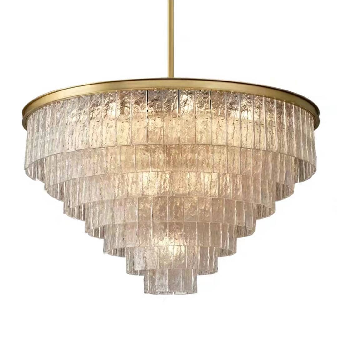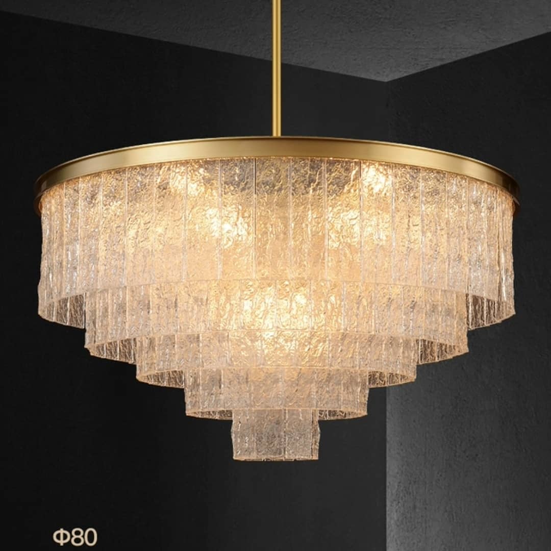 Корпус из меди – традиционного, «аристократического» в индустрии света материала. Стекло ручной работы, очень похоже на тщательно вырезанные льдинки, которые создают обворожительную игру света. Различные варианты, под различный метраж жилой площади: 80, 60, 45 см – люстры идеальной солярной формы, 85 и 100 см – продолговатые.