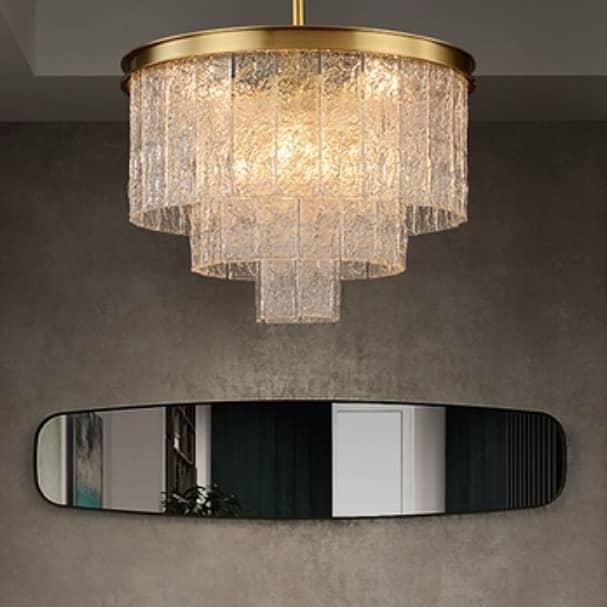 Корпус из меди – традиционного, «аристократического» в индустрии света материала. Стекло ручной работы, очень похоже на тщательно вырезанные льдинки, которые создают обворожительную игру света. Различные варианты, под различный метраж жилой площади: 80, 60, 45 см – люстры идеальной солярной формы, 85 и 100 см – продолговатые.