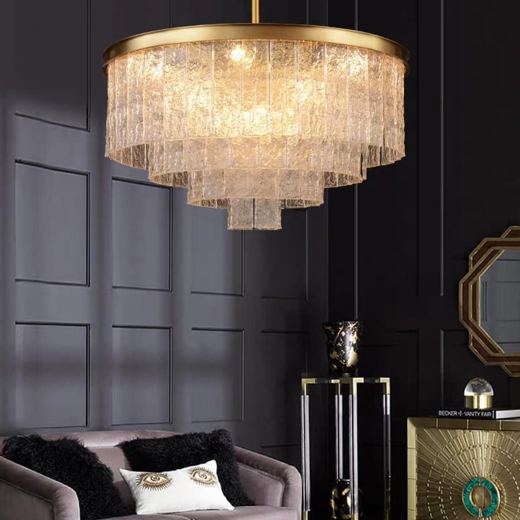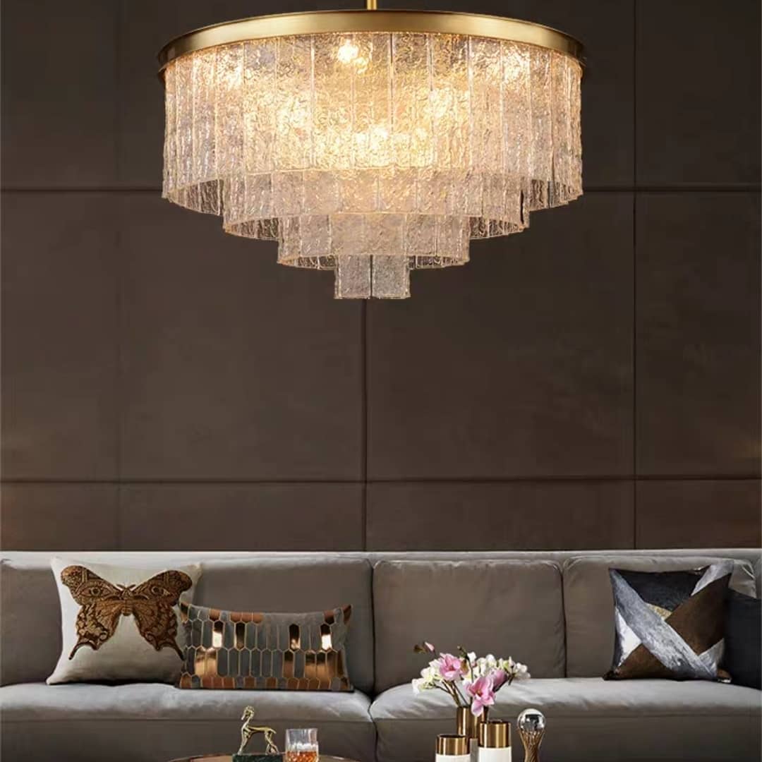 Корпус из меди – традиционного, «аристократического» в индустрии света материала. Стекло ручной работы, очень похоже на тщательно вырезанные льдинки, которые создают обворожительную игру света. Различные варианты, под различный метраж жилой площади: 80, 60, 45 см – люстры идеальной солярной формы, 85 и 100 см – продолговатые.