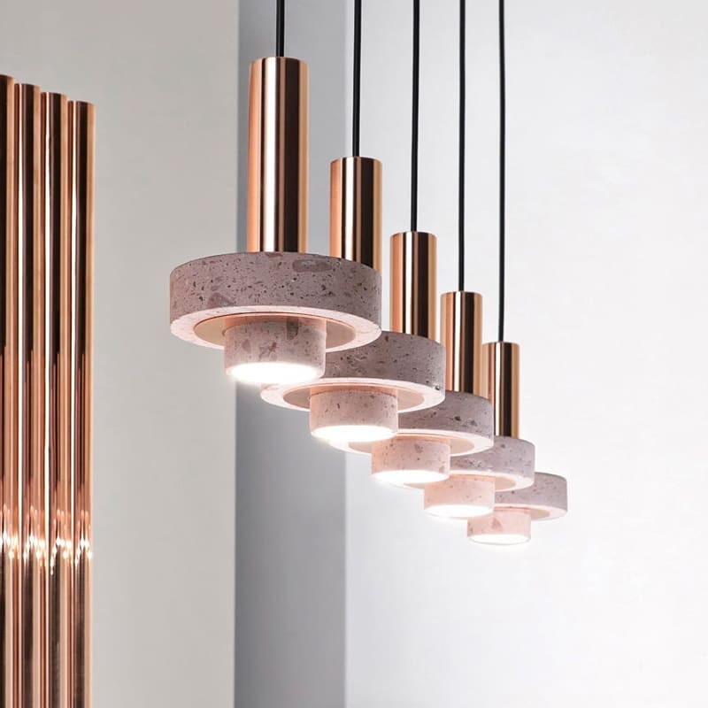 Дизайнерские, подвесные светильники. Оригинальные и необычные. Смелое решение – использовать терраццо, в качестве материала для изготовления, но оно полностью себя оправдало. Востребованность – зашкалила! И приобретают их не только для дома, но и для коммерческих помещений. Терраццо, в сочетании с «розовым золотом» – это стильно, ярко и очень красиво.