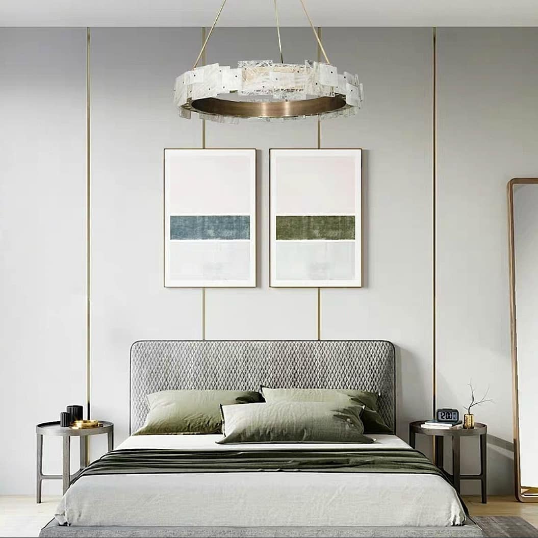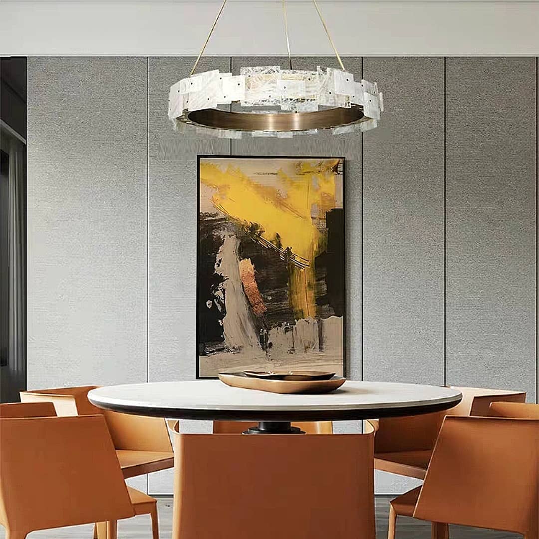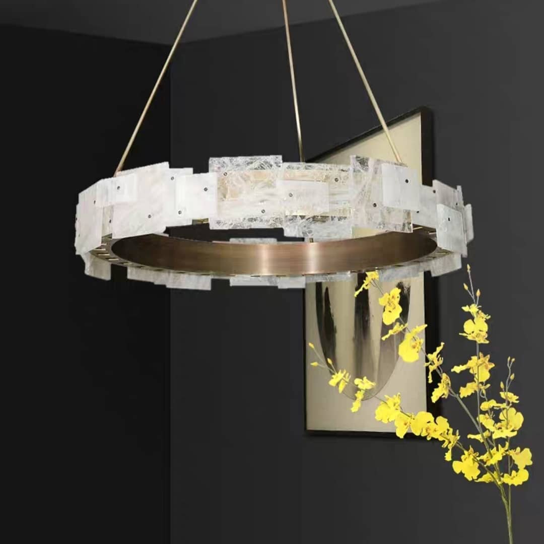 Оригинальная люстра совершенной солярной формы, с прямоугольными вставками кристаллов испанского доломита по окружности.