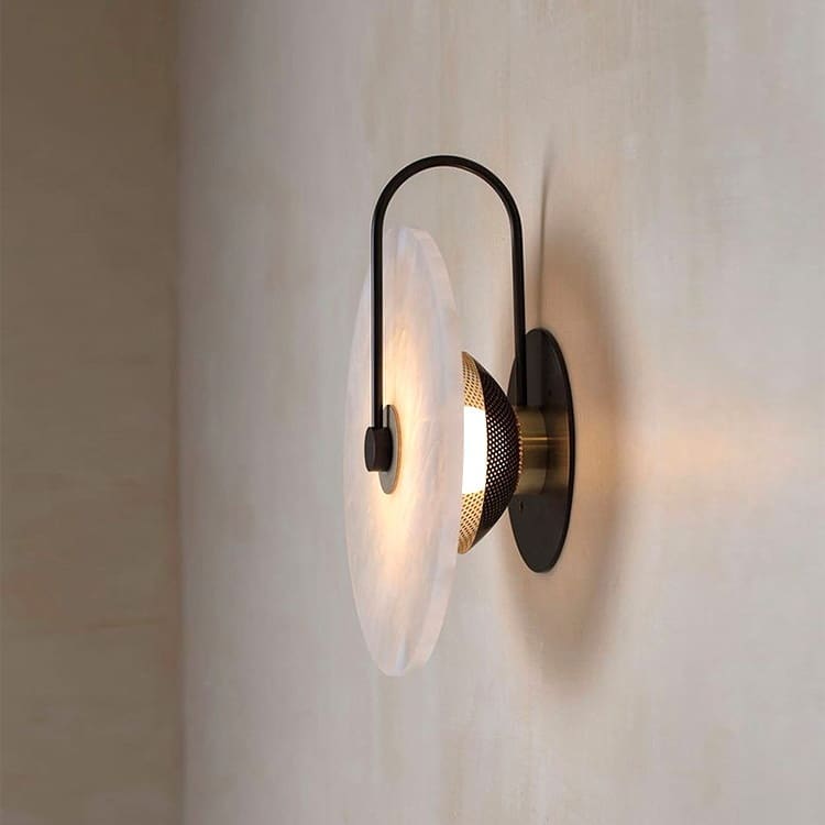 Настенный светильник с рассеивателем в виде мраморного диска.