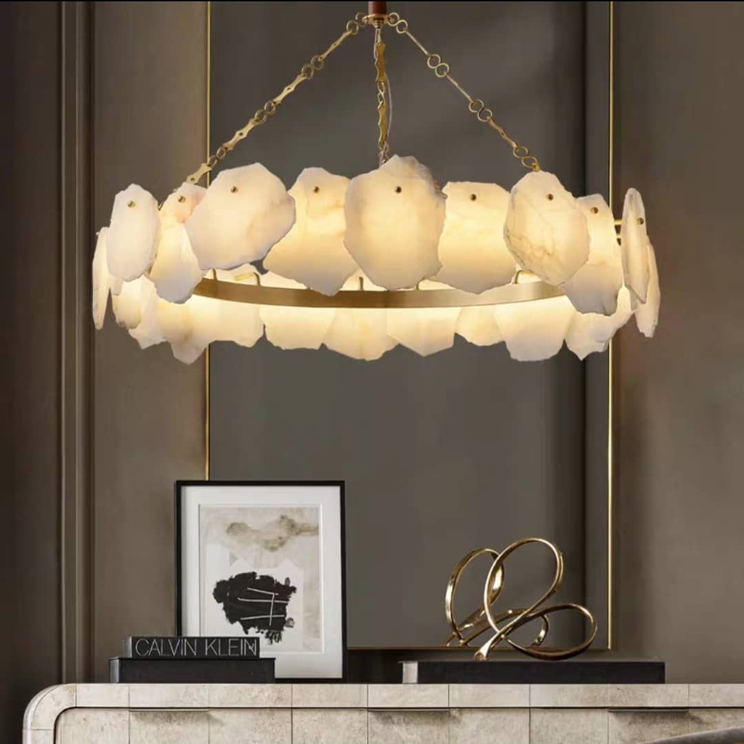 Мраморная люстра ручной работы! Материализация яркой красоты и роскоши, актуальной во все времена. Изготовлена из отборного мрамора, блестящей латуни и натуральной кожи.