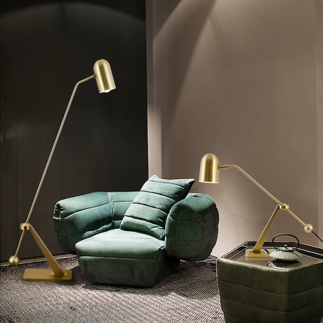Настольная лампа и торшер, в стиле минимализма и постмодерна. Модели практически идентичны и отличаются лишь размером. Высококачественная сталь с прекрасным, радующим глаз, гальваническим покрытием. Кажется, что они изготовлены целиком из настоящего золота!
