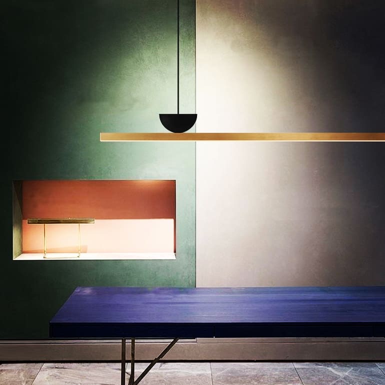 Евклидова геометрия – так можно описать этот светильник. Прямые чёткие линии, понятные формы, широкая зона освещения.