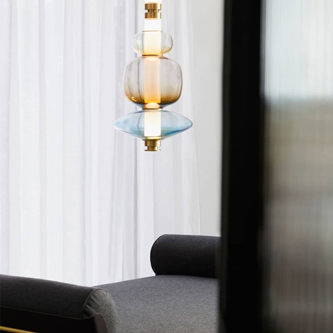 Оригинальные подвесные светильники. Отлично, даже завораживающе смотрятся и в горизонтальном, и в вертикальном вариантах подвеса. Прекрасное решение для современного, стильного интерьера гостиной, студии или лаунж-зоны. При желании, для разнообразия, «горизонталь» легко меняется на «вертикаль». Стекло, высококачественная нержавеющая сталь со специальным покрытием.