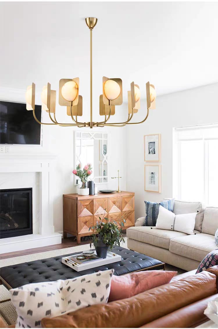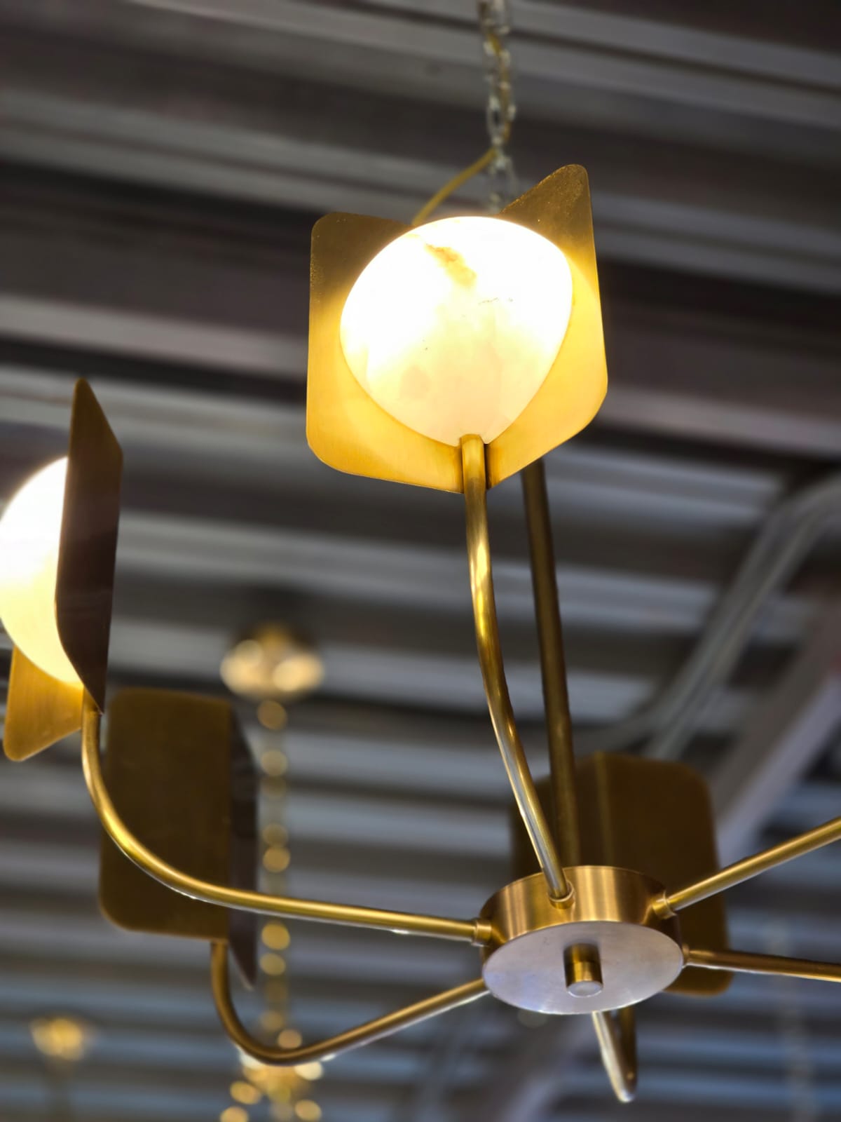 Белоснежные плафоны и золотой блеск благородной латуни – отличное сочетание в современной люстре и бра от Monsterior Shop. Ручная работа. Стильное и изящное решение для украшения статусного и уникального интерьера.