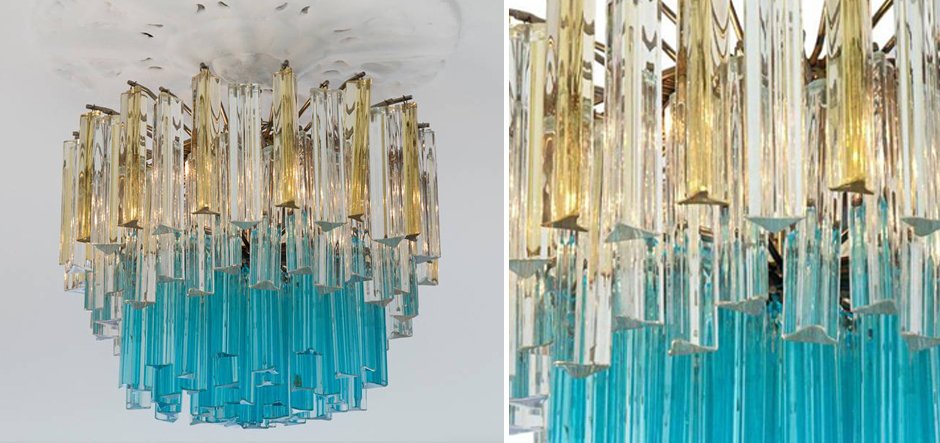 1960s Vintage Murano Glass Chandelier turquoise glass
