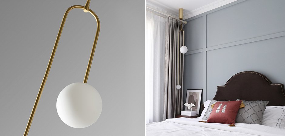В коллекцию входит подвесной светильник, торшер, настольная лампа и бра.