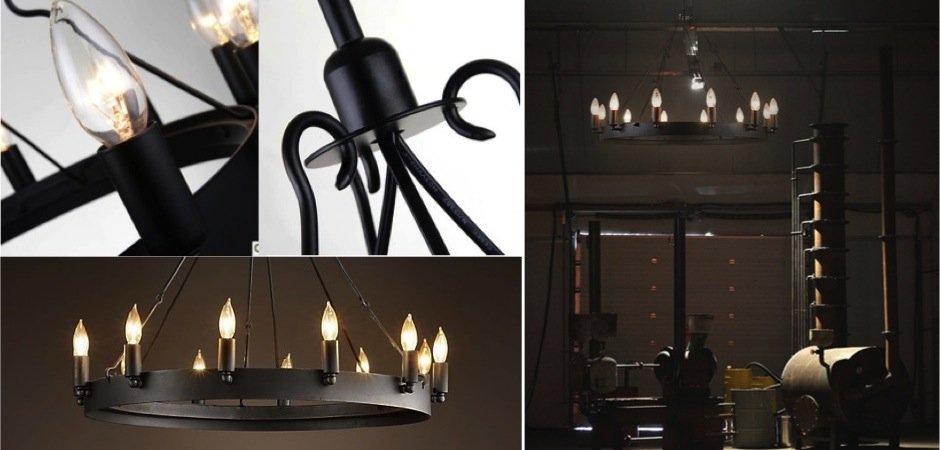 Сельского стиля, простую по форме и величественного размера, нашу люстру ручной ковки разработал промышленный кузнец John Sarriugarte. Черпая вдохновение из ранних индустриальных светильников 20-го века, он создал свою люстру из толстого углового железа.