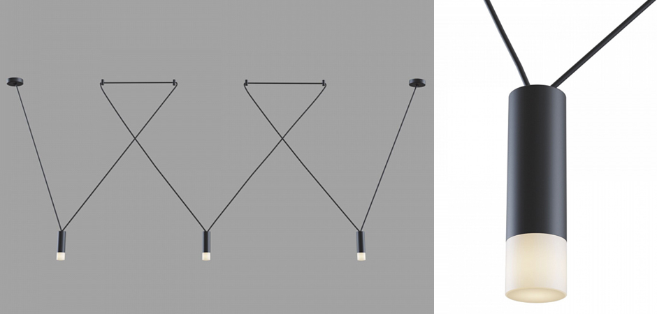 Wireflow LED Black Suspension lam 3 патрона designed by Jordi Vilardell