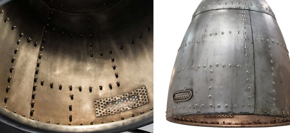 Плафон Светильника HANGING LAMP STEAMPUNK будто скроен из разноразмерных кусков металла, а для прочности прошит заклепками по всему периметру и напоминает фрагмент космического корабля, что делает его фантазийным и, как следствие, притягательным. Жгуче необычный светильник.