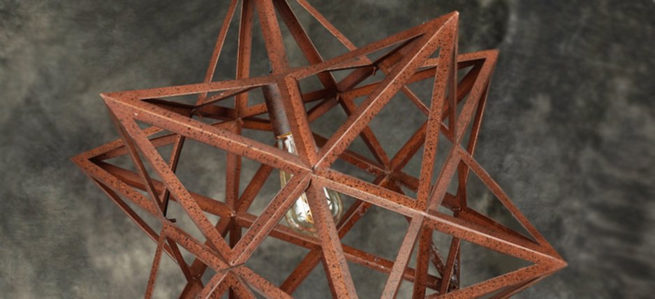 Потолочный светильник Star в виде звезды завораживает своей формой. Удивительно, как простые треугольные формы могут образовать такую сложную и красивую конструкцию. Каркас потолочного светильника Star сделан из металла. Он образует 12 конечную звезду. Для замены лампочки один конец светильника открывается. Эта эффектная люстра-звезда прекрасно подойдет для современного интерьера