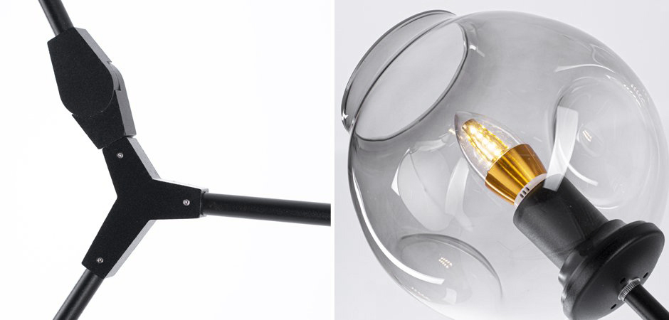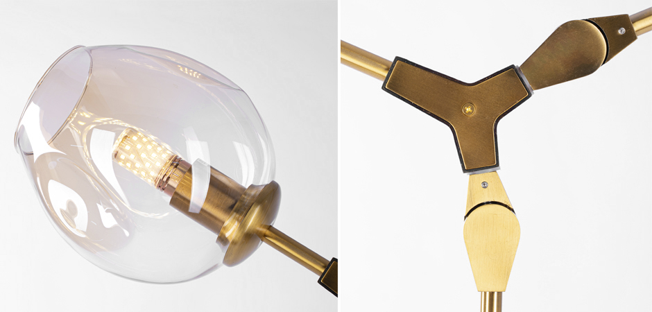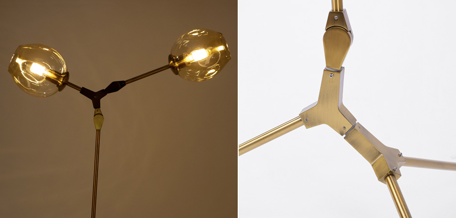 Золотой: высота 165 см, длина 66 см, высота плафона 18 см Черный: высота 183 см, длина 86 см Плафоны торшера черного цвета разного размера |