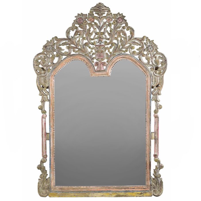 Приглашаем купить восточное зеркало в резной раме из массива тика. Антикварная древесина тика традиционно используется мастерами Индии для изготовления долговечных и красивых изделий. С годами качественные характеристики тика только улучшаются - дерево становится плотнее и крепче. Рама этого зеркала не боится ни повышенной влажности, ни перепадов температур. Чуть покрытая патиной, она будет десятилетиями служить своим владельцам и, несомненно, украшать интерьер.