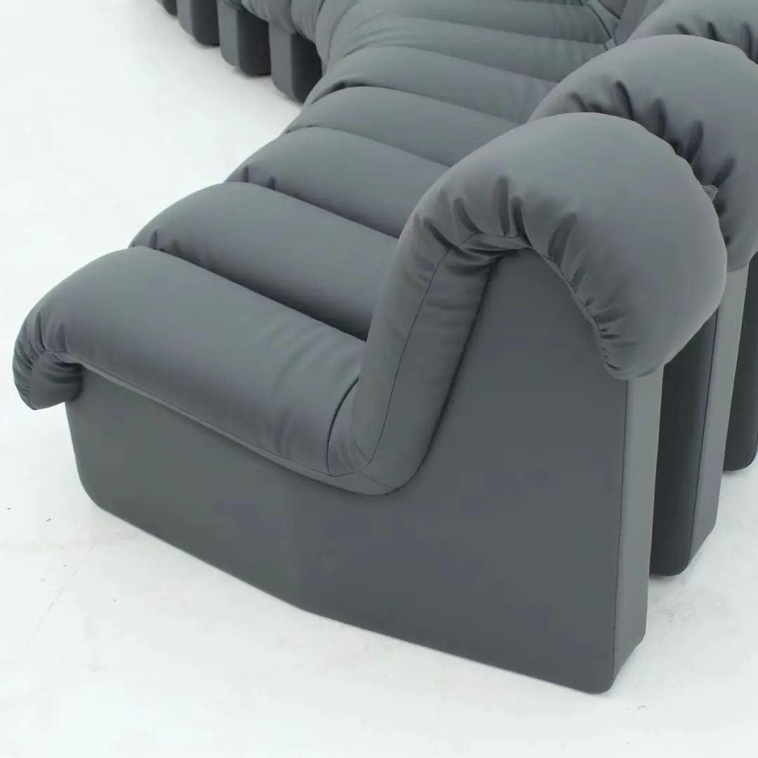 Шикарный секционный диван в гениальном дизайнерском исполнении! Уникальная вещь, которая ярко украсит статусный современный интерьер и погрузит вас в настоящий комфорт и релакс. Вы можете приобрести стандартную комплектацию из 20 секций, а можете заказать любое количество секций под размеры вашей гостиной.